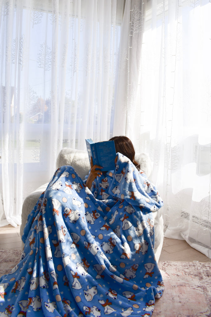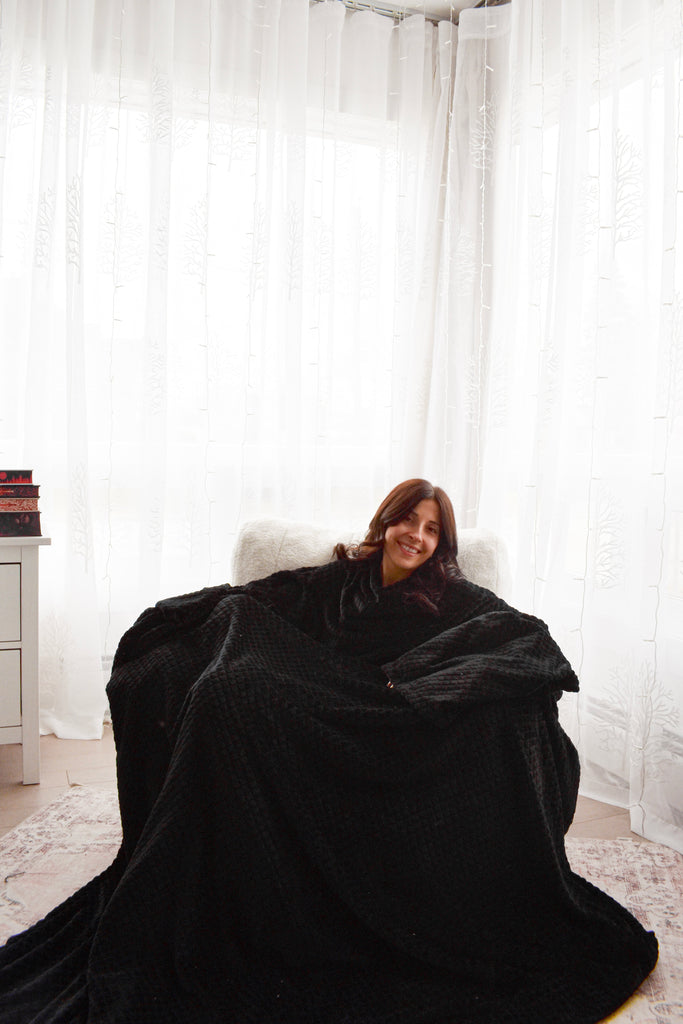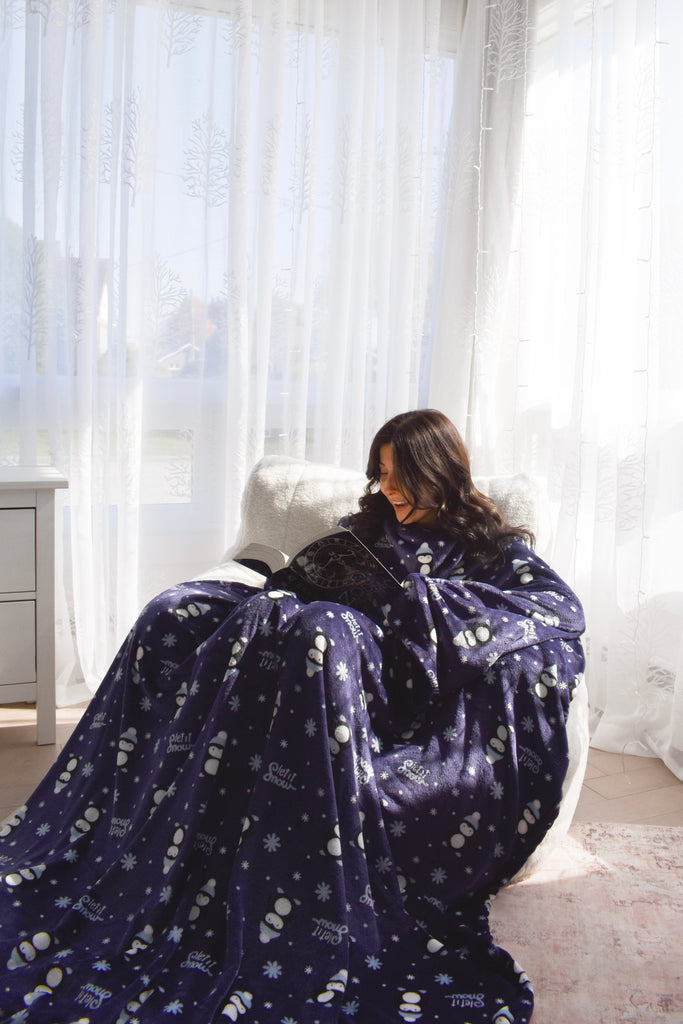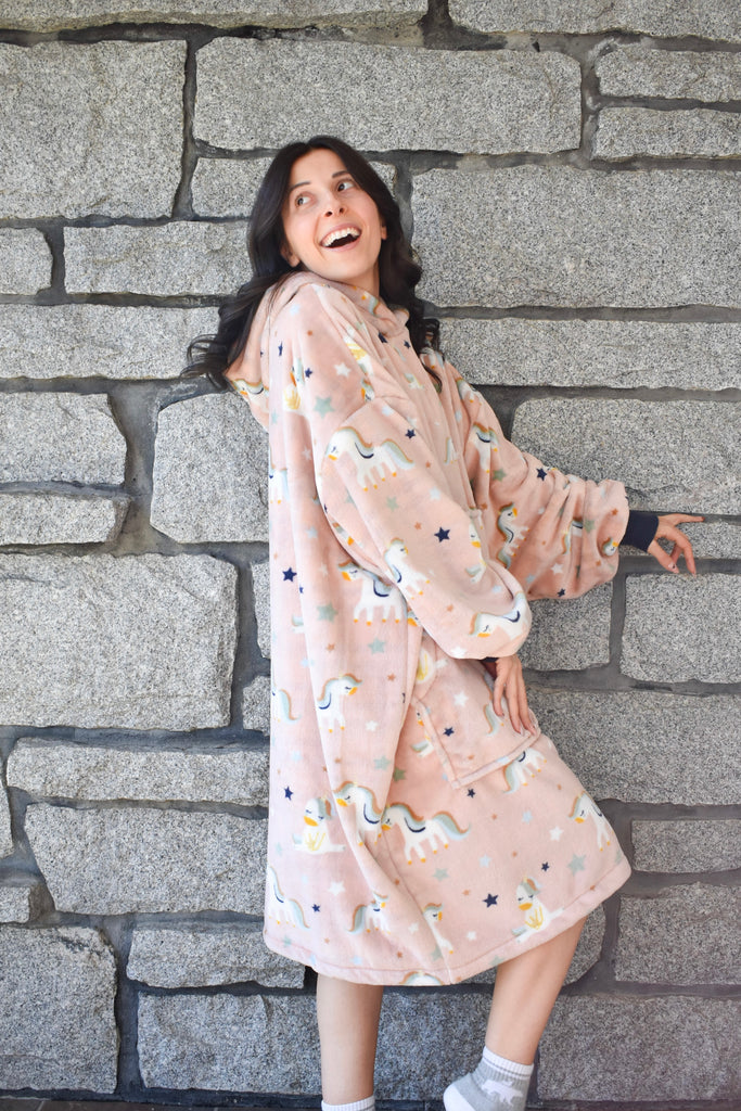 Les doudous à manches sont comme les doudous design mais avec des manches! Elles sont les doudous parfaites pour une soirée cinéma car vous pouvez regardez un film sans avoir à sortir vos bras de la doudou! Le dos reste ouvert.