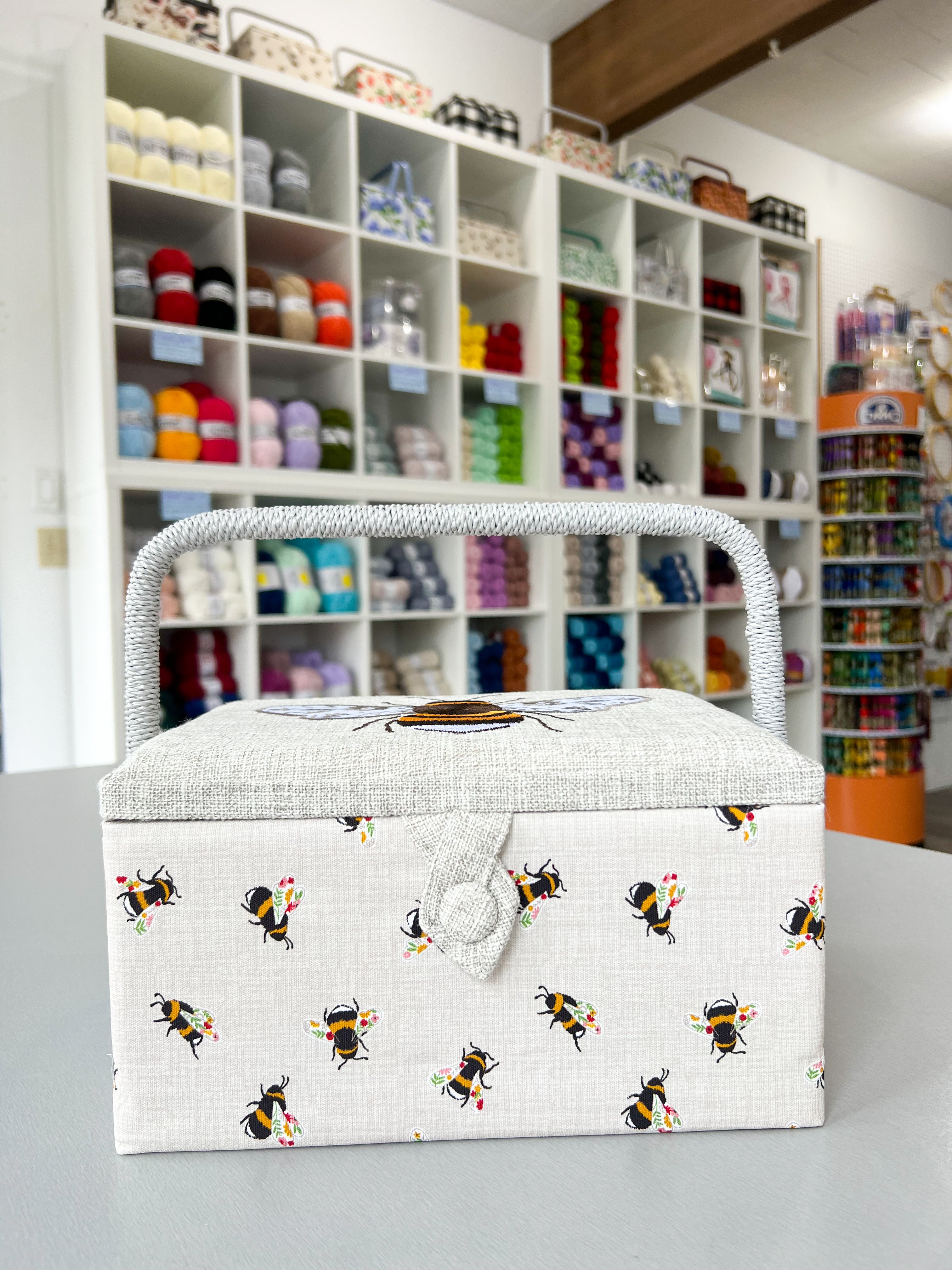 Panier de couture brodé, Hobby Gift, Médium. Abeilles